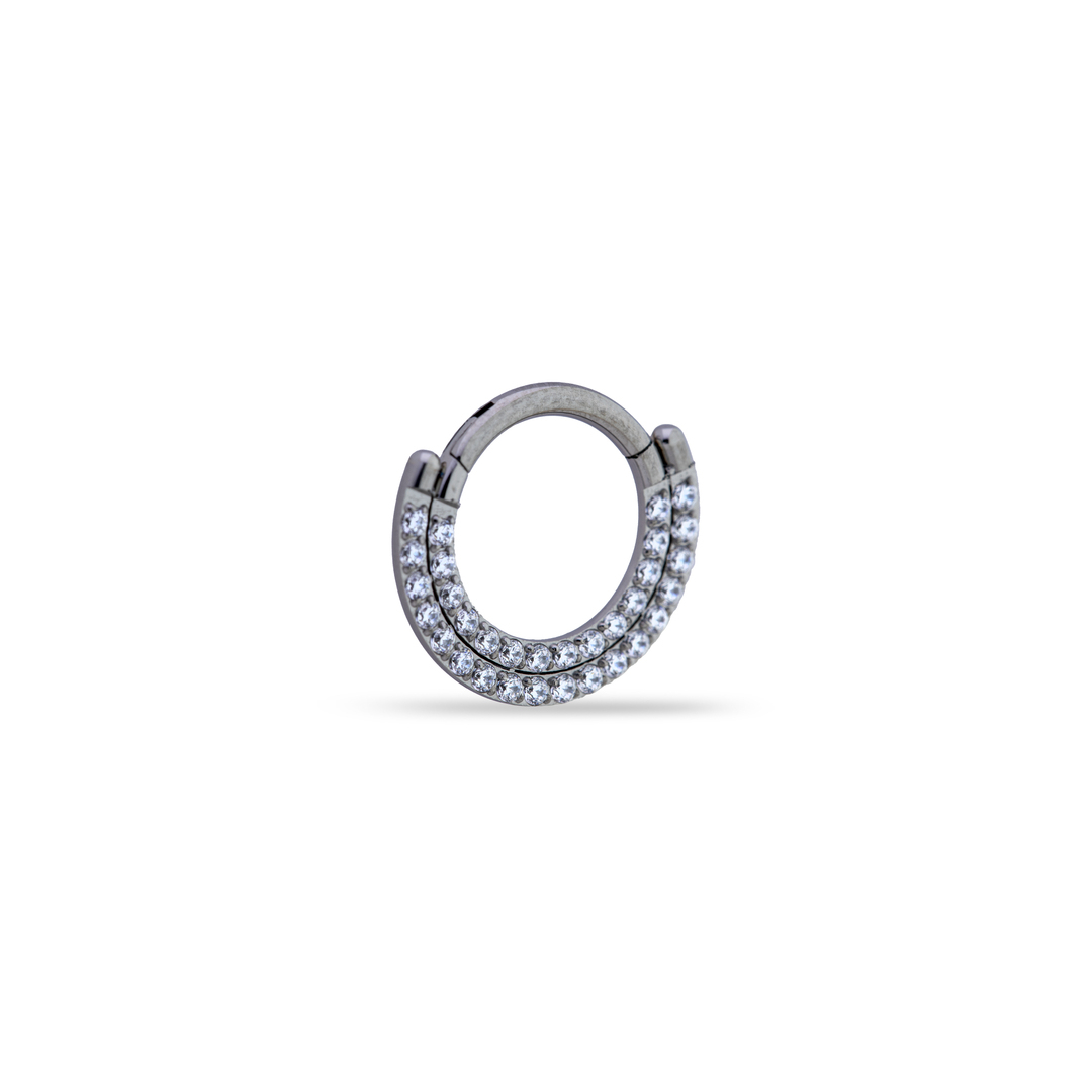 Argolla con cierre clicker, con doble fila de cristales, en este caso los cristales quedan de forma plana.